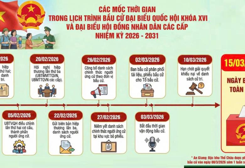 Trang Chủ Phó Chủ tịch UBND tỉnh An Giang Ngô Công Thức thăm, chúc tết doanh nghiệp tại phường Tô Châu Tin tức sự kiện nổi bật Phó Chủ tịch UBND tỉnh An Giang Ngô Công Thức thăm, chúc tết doanh nghiệp tại phường Tô Châu Các mốc thời gian chính trong lịch trình bầu cử ĐBQH khóa XVI và đại biểu HĐND các cấp nhiệm kỳ 2026 - 2031 Phường Tô Châu (tỉnh An Giang): Vững vàng vượt khó, bứt phá trong năm đầu thực hiện mô hình chính quyền hai cấp Công đoàn cơ sở Ngân hàng chính sách xã hội tỉnh An Giang phối hợp UBND phường Tô Châu tổ chức trao quà tết xuân Bính Ngọ năm 2026 Phường Tô Châu phối hợp tổ chức hội thi trang trí cây mai ngày tết năm 2026 Thông báo niêm yết danh sách cử tri, địa điểm niêm yết danh sách cử tri, địa điểm bỏ phiếu phường Tô Châu Phường Tô Châu triển khai công tác bầu cử Đại biểu Quốc hội khóa XVI và đại biểu Hội đồng nhân dân các cấp nhiệm kỳ 2026-2031 Phường Tô Châu sôi nổi các hoạt động kỷ niệm 96 năm Ngày thành lập Đảng Cộng Sản Việt Nam (03/02/1930 - 03/02/2026) Phường Tô Châu cưỡng chế tháo dỡ các công trình trái phép lấn chiếm kênh Rạch Cụt THÔNG BÁO CÁC CHÍNH SÁCH PHÁP LUẬT CÓ HIỆU LỰC TRONG THÁNG 01 NĂM 2026 Văn bản mới ban hành Nghị quyết về việc điều chỉnh ấn định số đơn vị bầu cử, danh sách các đơn vị bầu cử và số lượng đại biểu được bầu ở mỗi đơn vị bầu cử đại biểu HDDND phường, nhiệm kỳ 2026-2030 Về việc kiện toàn Tiểu ban An ninh trật tự, y tế Về việc kiện toàn Tiểu ban Nhân sự và Giải quyết khiếu nại tố cáo Về việc kiện toàn Tiểu ban Thông tin, tuyên truyền Về việc kiện toàn Tiểu ban Tổng hợp và nghiệp vụ bầu cử Đảng - Đoàn thể Phường Tô Châu phối hợp tổ chức hội thi trang trí cây mai ngày tết năm 2026 Chủ đề Đại hội đại biểu toàn quốc lần thứ XIV của Đảng: Sự kết tinh trí tuệ, bản lĩnh và khát vọng phát triển Hội Cựu Chiến binh phường Tô Châu long trọng tổ chức Đại hội đại biểu Hội Cựu Chiến binh phường Tô Châu, nhiệm kỳ 2025 - 2030. Phường Tô Châu tổ chức chương trình "Đêm hội trăng rằm" năm 2025 Đảng ủy phường Tô Châu trao tặng huy hiệu đảng đợt 2/9 cho 12 đồng chí 30, 40, 45, và 55 năm tuổi đảng Uỷ ban nhân dân-Hội đồng nhân dân Các mốc thời gian chính trong lịch trình bầu cử ĐBQH khóa XVI và đại biểu HĐND các cấp nhiệm kỳ 2026 - 2031 Phường Tô Châu cưỡng chế tháo dỡ các công trình trái phép lấn chiếm kênh Rạch Cụt Ngày 30/12/2025 Ủy ban nhân dân phường Tô Châu tổ chức Hội nghị tổng kết công tác chỉ đạo, điều hành của UBND phường năm 2025 và triển khai phương hướng nhiệm vụ năm 2026. Hội đồng Nhân dân phường tổ chức kỳ họp cuối năm gắn với tổng kết nhiệm kỳ 2021–2026 Kinh tế - Hạ tầng đô thị Xây dựng phường Tô Châu là đô thị phát triển khá của tỉnh An Giang UBND phường Tô Châu phối hợp Sở Xây dựng An Giang, nhà thầu xây dựng tổ chức lễ khởi công xây dựng đường trục chính ven biển vào trung tâm Hà Tiên UBND phường Tô Châu tổ chức hội nghị thành viên UBND phường mở rộng tháng 8 An Giang: Đảm bảo an ninh, trật tự dịp Lễ Quốc khánh 2/9 Thôn báo cho các hộ dân địa phương thuê mặt bằng bán các loại hoa tết Nguyên đán Ất tỵ năm 2025 Thời sự Phó Chủ tịch UBND tỉnh An Giang Ngô Công Thức thăm, chúc tết doanh nghiệp tại phường Tô Châu Phường Tô Châu (tỉnh An Giang): Vững vàng vượt khó, bứt phá trong năm đầu thực hiện mô hình chính quyền hai cấp Phường Tô Châu triển khai công tác bầu cử Đại biểu Quốc hội khóa XVI và đại biểu Hội đồng nhân dân các cấp nhiệm kỳ 2026-2031 Chợ Hoa xuân phường Tô Châu – Điểm hẹn mùa xuân giữa biển trời rộng mở Tô Châu tổ chức tổng kết phong trào nông dân thi đua sản xuất, kinh doanh giỏi năm 2025 Xây dựng chính quyền UBND phường Tô Châu tổ chức hội nghị thành viên UBND phường mở rộng tháng 8 Phó Chủ tịch UBND tỉnh Lê Trung Hồ tiếp và làm việc với Đoàn khảo sát của Ủy ban Văn hóa và Xã hội Quốc hội khóa XV An Giang: Đảm bảo an ninh, trật tự dịp Lễ Quốc khánh 2/9 Xã đoàn Tân Thạnh, Chi đoàn Đồn Biên Phòng Xẻo Nhàu tuyên truyền phòng chống khai thác IUU Hội Khuyến học xã Thuận Yên hoàn thành các tiêu chí xây dựng “Cộng đồng học tập” năm 2023. Tuyên truyền phổ biến pháp luật Nhà xuất bản Chính trị quốc gia Sự thật tái bản ba bộ sách có giá trị đặc biệt về Chủ tịch Hồ Chí Minh Phường Tô Châu tuyên truyền Ngày Chuyển đổi số Quốc gia ngày 10.10 Tuyên truyền, cổ động chào mừng Đại hội đại biểu Đảng bộ tỉnh An Giang, nhiệm kỳ 2025 – 2030 Thực tập phương án chữa cháy và cứu nạn cứu hộ tại Chi nhánh công ty cổ phần rau quả thực phẩm An Giang Thành lập Hội Phụ nữ Ban Chỉ huy Bộ đội Biên phòng tỉnh An Giang Giáo dục - Đào tạo Trường Tiểu học Thuận Yên phường Tô Châu kỷ niệm Ngày hiến chương nhà giáo Việt Nam 20-11 Trường tiểu học Tô Châu 