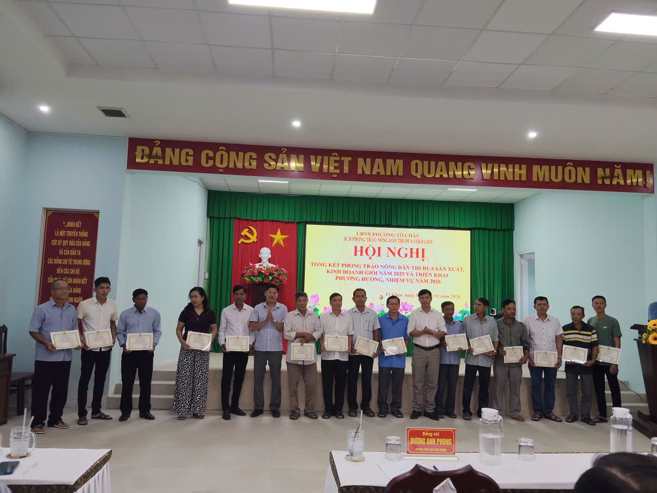 Tham dự và chỉ đạo Hội nghị có ông Dương Anh Phong, Ủy viên Ban thường vụ, Phó Chủ tịch UBND phường trưởng Ban chỉ đạo, ông Tạ Văn Thành, Phó Chủ tịch UBMTTQ Việt Nam, Chủ tịch Hội nông dân phường Tô Châuu cùng đại diện lãnh đạo các cơ quan Đảng, chính quyền và các nông dân có mô hình và cách làm hay trong sản xuất kinh doanh thuộc các ấp, khu phố tại địa phương.