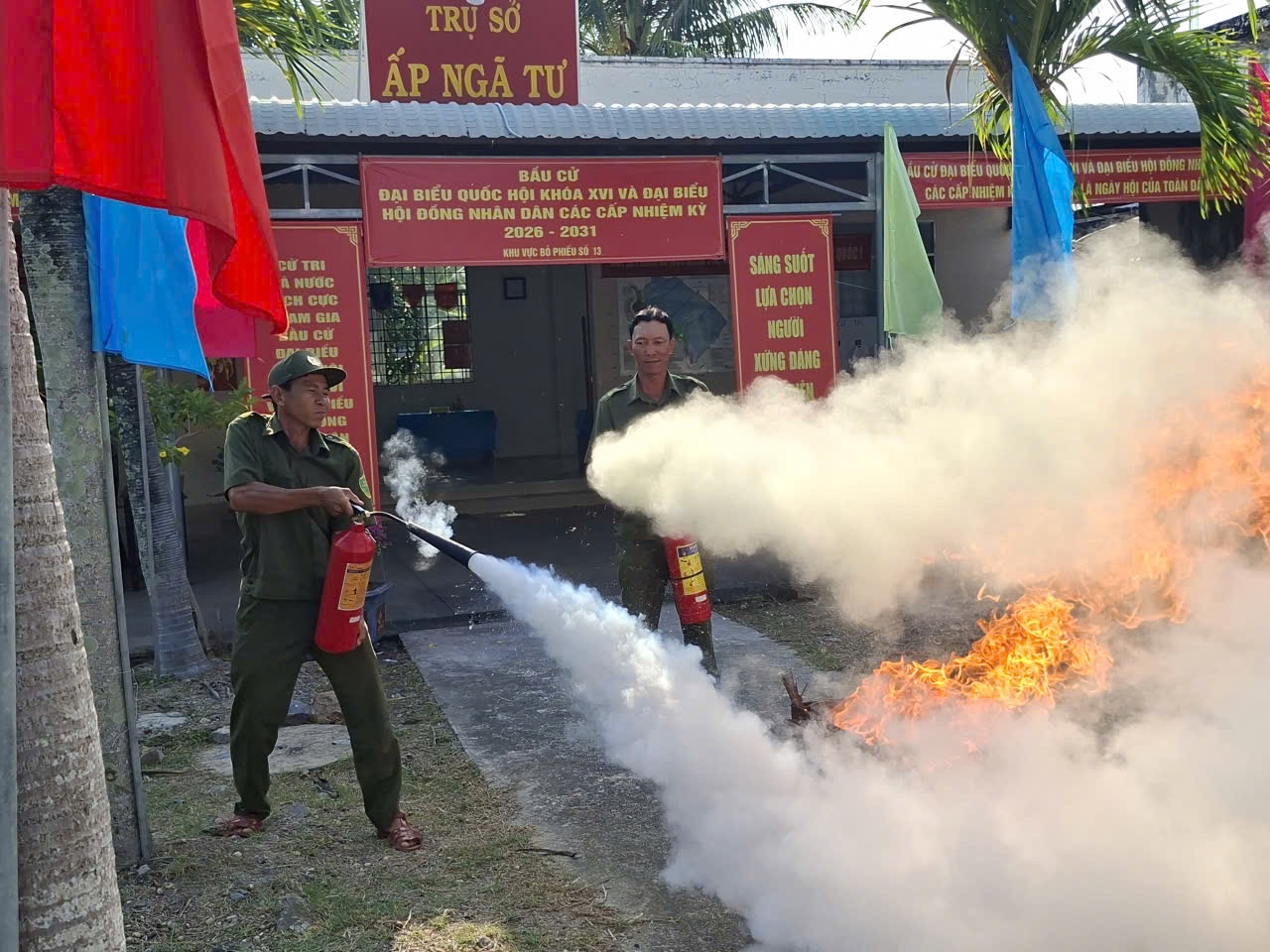 Ngày 12/3/2026 công an Phường Tô Châu thực hiện diễn tập phương án phòng cháy chữa cháy đảm bảo an toàn tuyệt đối tại các điểm bầu cử trên địa bàn phường. Trước đó lực lượng Công an phường đã tổ chức kiểm tra an toàn PCCC tại các điểm bầu cử thuộc các ấp trên địa bàn phường. Nội dung kiểm tra tập trung vào hệ thống điện, thiết bị tiêu thụ điện, lối thoát nạn, phương tiện chữa cháy tại chỗ, đồng thời đánh giá các nguy cơ, khả năng phát sinh cháy nổ tại khu vực bỏ phiếu, kịp thời nhắc nhở các tổ bầu cử khắc phục những tồn tại như sắp xếp dây dẫn điện gọn gàng, tránh quá tải hệ thống điện, không bố trí vật liệu dễ cháy gần nguồn điện và nguồn nhiệt, bảo đảm lối thoát nạn thông thoáng.