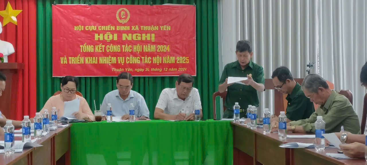 Chiều ngày 20/12/2024, tại hội trường UBND xã, Hội Cựu chiến binh xã Thuận Yên tổ chức Hội nghị tổng kết công tác Hội Cựu chiến binh năm 2024, triển khai phương hướng, nhiệm vụ năm 2025. Tham dự Hội nghị có đồng chí Đỗ Thi Thanh Túy - Phó Chủ tịch Hội Cựu Chiến binh thành phố, đồng chí La Văn Thành - Phó Bí thư Thường trực Đảng ủy- Chủ tịch HĐND xã và lãnh đạo các ban ngành, đoàn thể xã cùng chi hội trưởng 05 chi hội ấp tham dự.