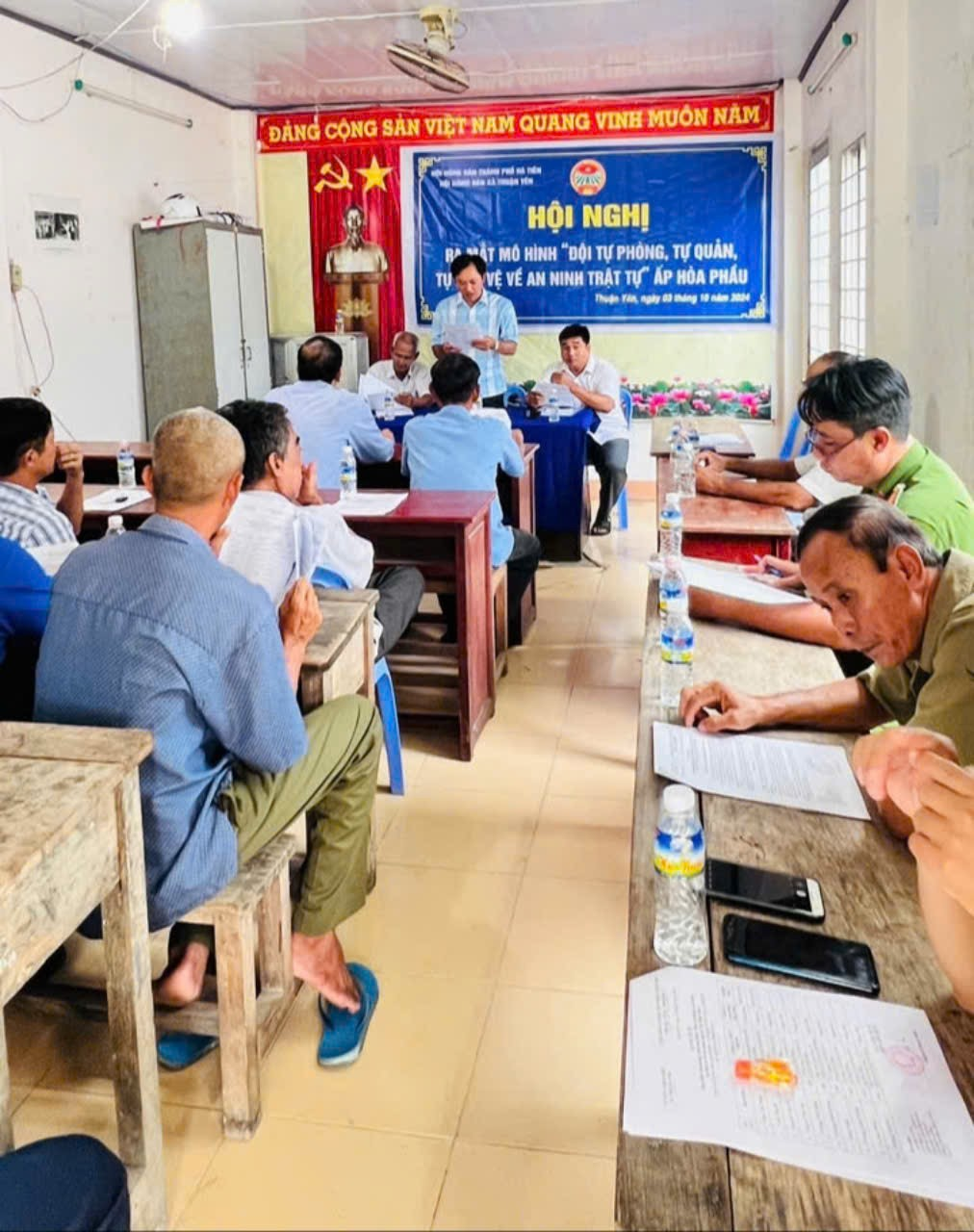 Chiều ngày 03/10/2024 tại Trụ sở ấp Hoà Phầu, xã Thuận Yên, thành phố Hà Tiên, Hội Nông dân xã Thuận Yên tổ chức hội nghị ra mắt mô hình “Đội tự phòng, tự quản, tự bảo vệ về an ninh trật tự” ấp Hòa Phầu.