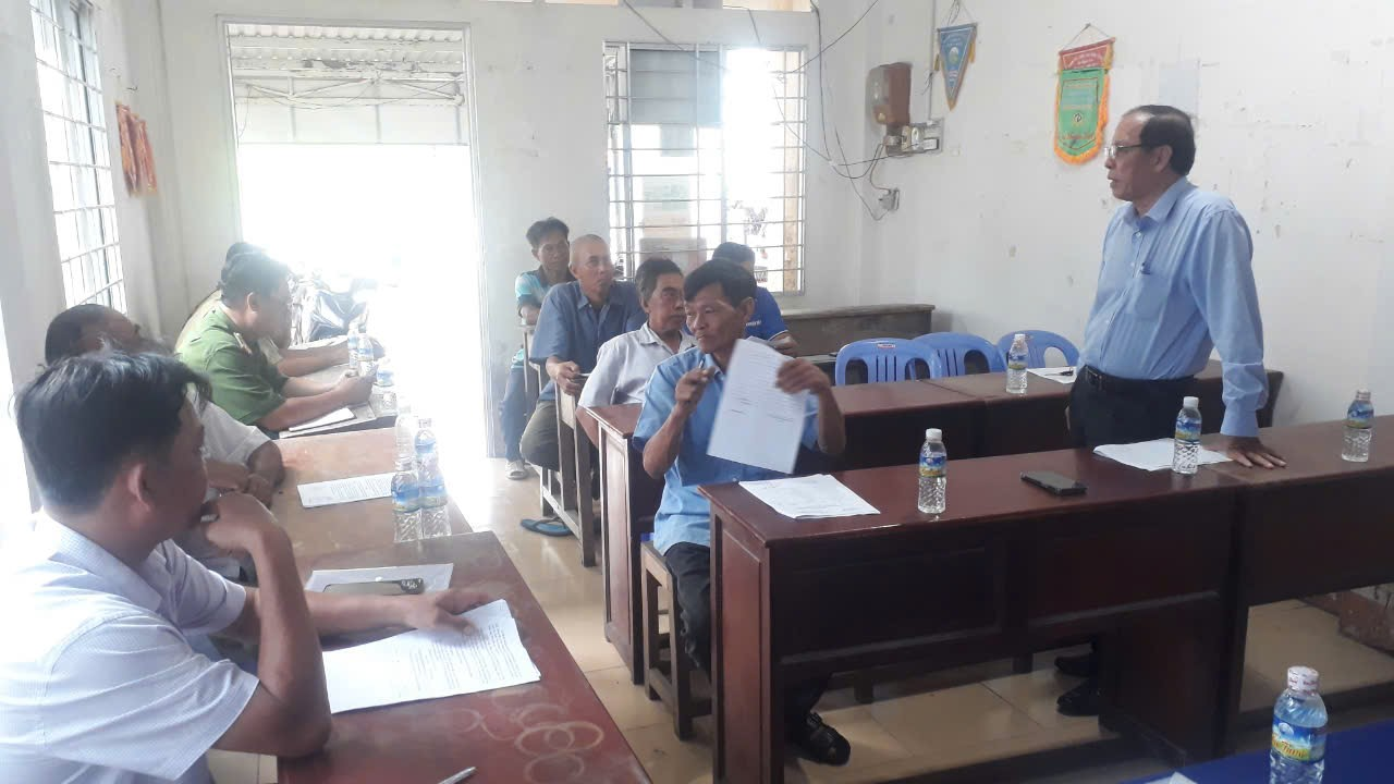 Ảnh: Ông La Thành Sử, Chủ tịch Hội Nông dân xã Thuận Yên đã công bố Quyết định của UBND xã về việc thành lập Ban điều hành thực hiện mô hình “Đội tự phòng, tự quản, tự bảo vệ về an ninh trật tự” ấp Hoà Phầu