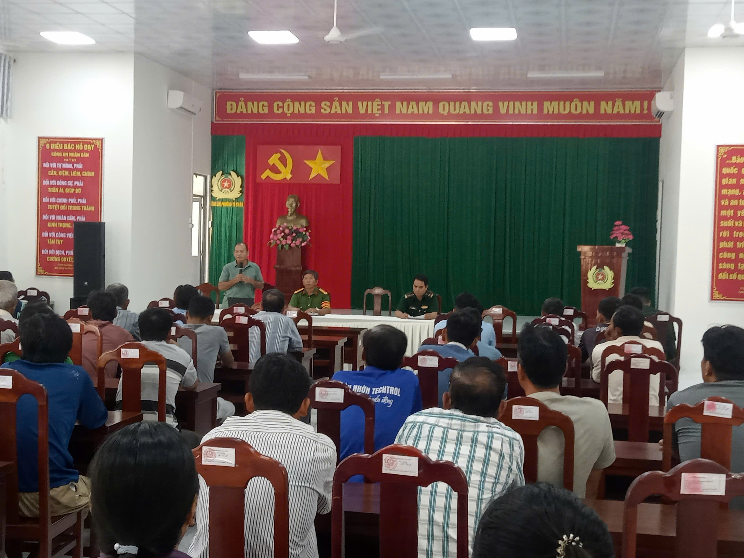 Thông qua hội nghị tuyên truyền với các nội dung ngắn gọn, dễ hiểu, như: Giữ liên lạc thường xuyên với đồn biên phòng, không xâm phạm vùng biển nước ngoài, tuân thủ quy định về an toàn khi đánh bắt xa bờ, bảo vệ môi trường biển và nguồn lợi thủy sản…với trọng tâm là Luật Thủy sản 2017; Chỉ thị số 45/CT-TTg ngày 13/12/2017 của Thủ Tướng Chính phủ về một số nhiệm vụ, giải pháp cấp bách để khắc phục cảnh báo của Ủy ban châu Âu về chống khai thác hải sản bất hợp pháp, không báo cáo và không theo quy định; Nghị định 38/2024/NĐ-CP ngày 04/5/2024 của Chính phủ quy định về xử phạt vi phạm hành chính (VPHC) trong lĩnh vực thủy sản. Khi hoạt động đánh bắt trên biển, đi thành tổ đội để hỗ trợ, giúp đỡ nhau khi cần, nếu phát hiện những hành vi vi phạm chủ quyền vùng biển, đảo, tài nguyên thiên nhiên, môi trường biển, lợi ích quốc gia hoặc những hành vi vi phạm pháp luật khác phải báo ngay cho chính quyền địa phương để hỗ trợ giúp ngư dân yên tâm bám biển.