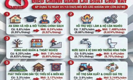 Thực hiện Quyết định số 2553/QĐ-TTg ngày 21/11/2025 của Thủ tướng Chính phủ về việc điều chỉnh giảm lãi suất cho vay một số chương trình tín dụng chính sách tại Ngân hàng Chính sách xã hội (NHCSXH), UBND tỉnh An Giang đã ban hành văn bản số 2009/UBND-KT ngày 03/12/2025 chỉ đạo các sở, ngành, địa phương khẩn trương triển khai đồng bộ các nội dung nhằm đưa chính sách sớm đi vào cuộc sống, bảo đảm đúng đối tượng, công khai, minh bạch và hiệu quả.